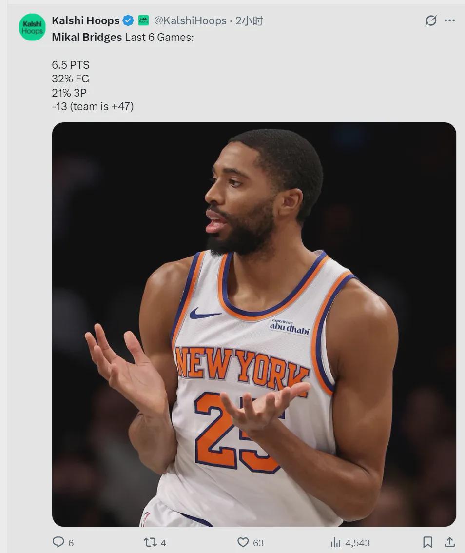 今天有尼克斯球迷在网上开喷:“布里奇斯的交易不仅会毁掉球队的未来,还会彻底断送球队的夺冠窗口期。毫不夸张地说,如果尼克斯最终没能用这套核心阵容赢得总冠军,当初那笔交易最终会成为NBA历史上最糟糕的交易之一。”